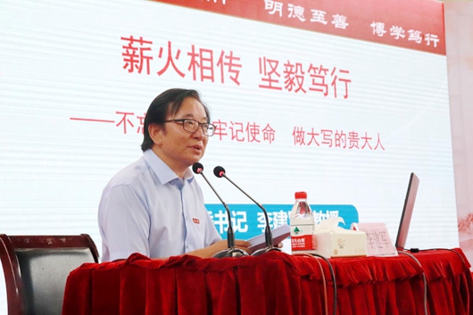 9月17日下午,校党委书记李建军在东校区体育馆为2019级研究生新生作题为《薪火相传 坚毅笃行——不忘初心、牢记使命 做大写的贵大人》的主题报告。350vip8888新葡的京集团MBA新生共计300余人到场聆听报告。