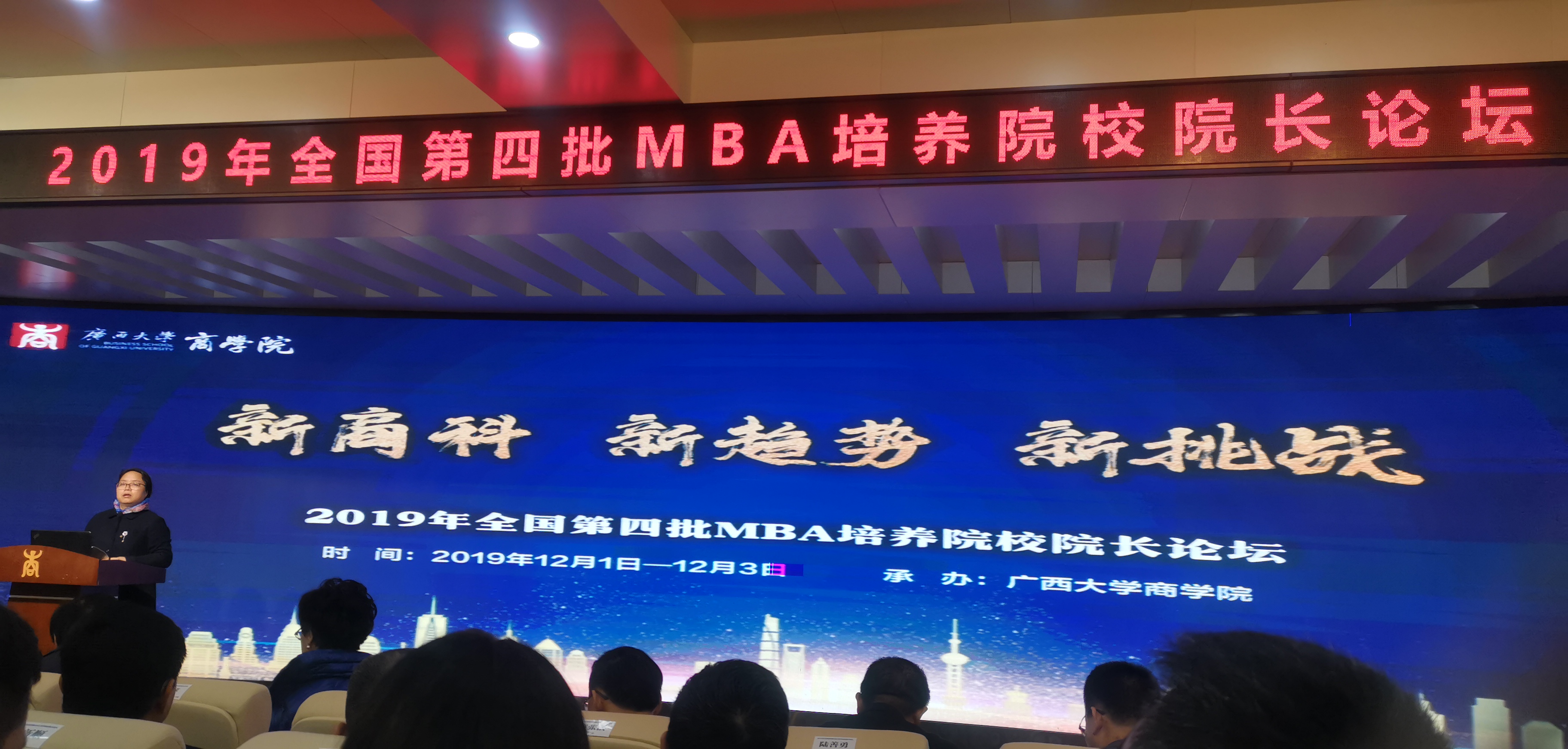 12月1—3日,2019年全国第四批MBA培养院校院长论坛在广西大学商学院隆重举行。350vip8888新葡的京集团副院长周莉莉、MBA教育中心主任项凯标、MBA教育中心办公室主任邓琳参加了此次论坛。