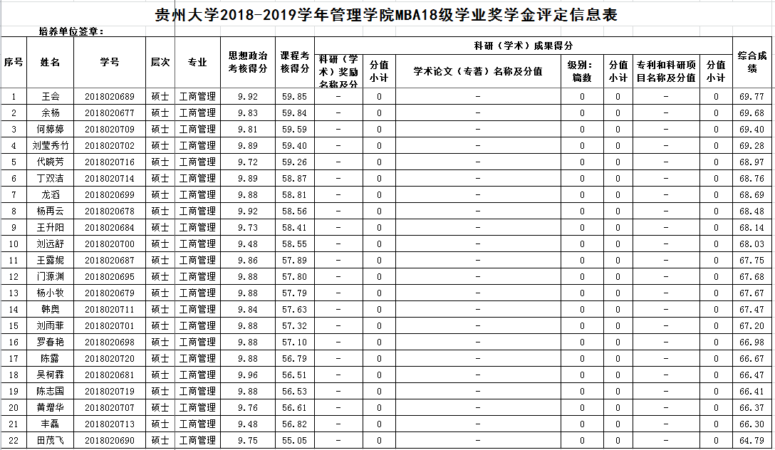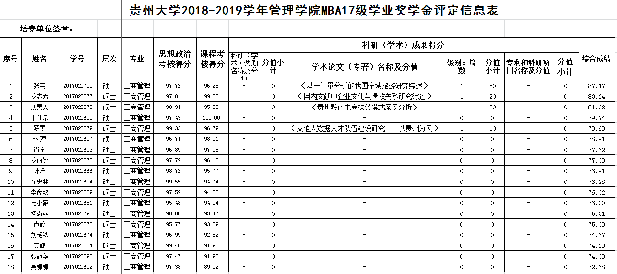 350vip8888新葡的京集团2018-2019学年350vip8888新葡的京集团MBA17级、18级学业奖学金评定信息