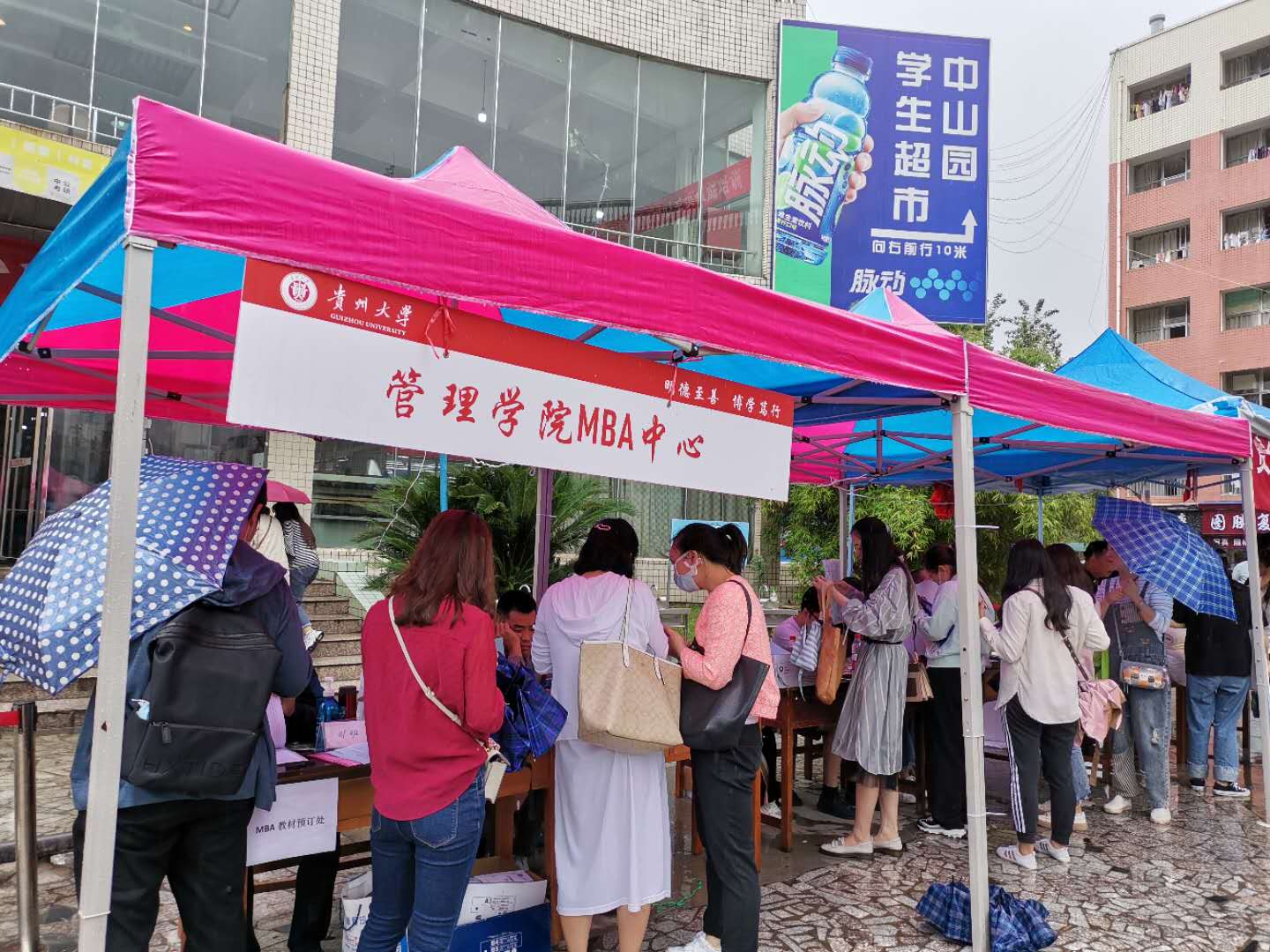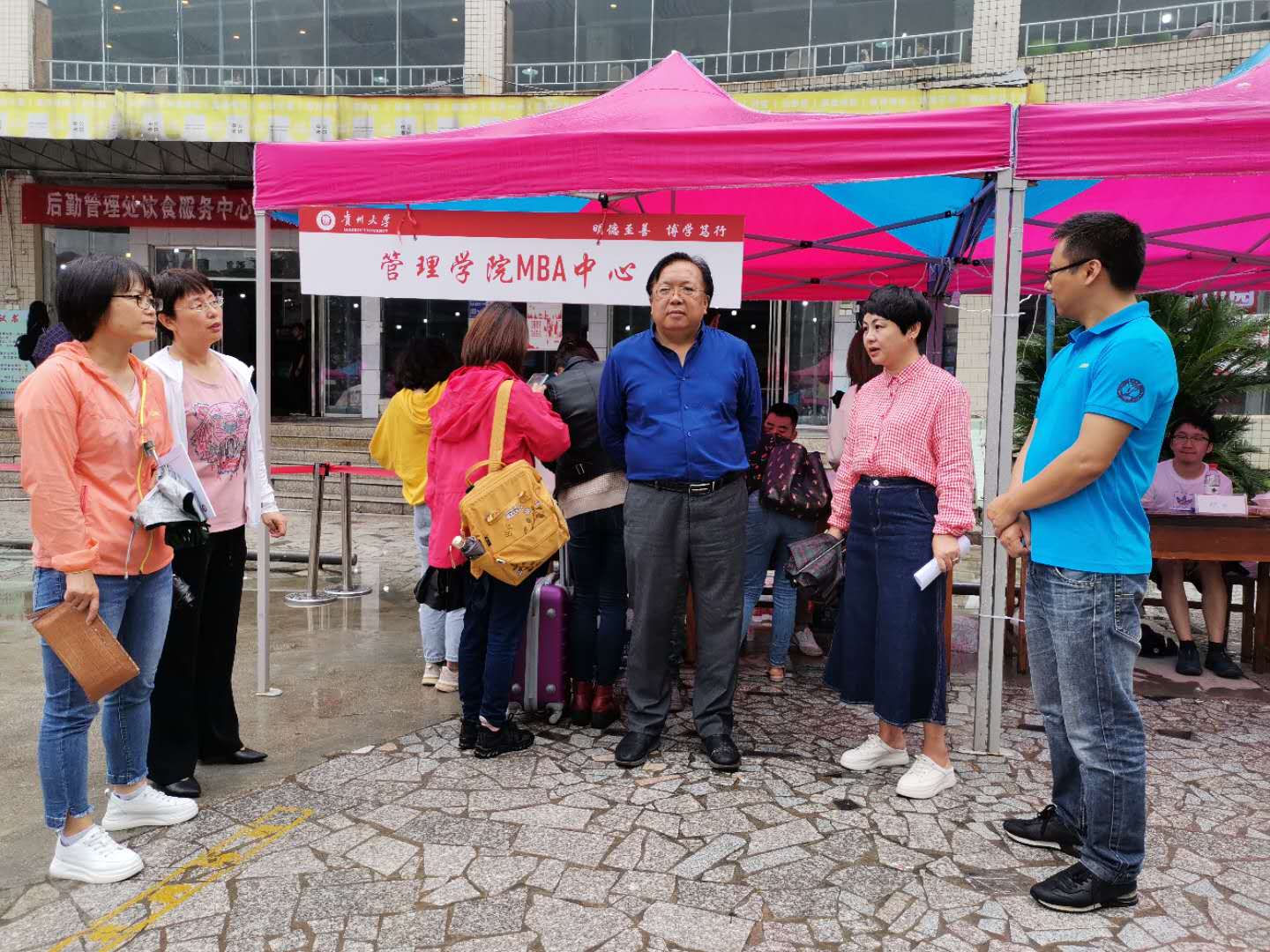 9月11日,350vip8888新葡的京集团MBA教育中心在350vip8888新葡的京集团中山园组织了新生迎接工作。天空一直飘雨,但丝毫没有影响新学员来校报到的热情,当天共迎接2020级MBA新学员300余名。