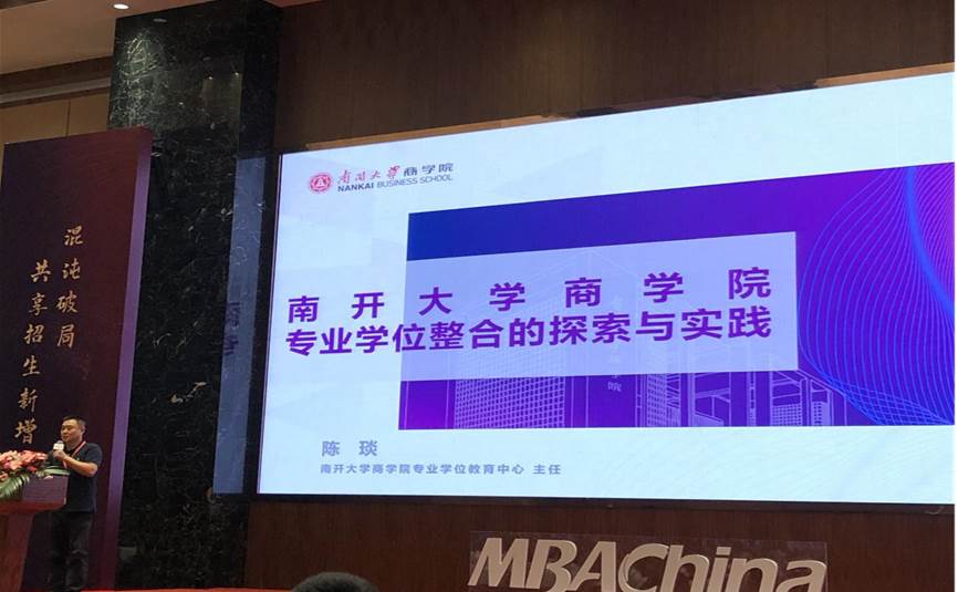 南开大学、上海交大安泰商学院的老师对“专业学位合并,利大于弊还是弊大于利”发表了演讲。南开大学任陈琰主任以“南开大学商学院专业学位的整合与探索”为题发表演讲。关于当前实践中的破局之道,他从管理体系重塑、资源重新配置、工作流程再造三方面做出说明,陈琰主任对南大专业学位的未来发展也寄予了美好期冀。