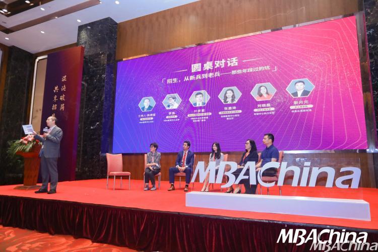 论坛的最后一个环节,南京大学MBA中心主任李晶、中山大学岭南(大学)学院招生部部长叶庆星、中国地质大学(武汉)专硕教育中心招生副主任张嘉琦、河北工业大学专硕中心执行主任刘晓晶、长江商学院信息化高级经理靳月元老师围绕主题“招生,从老兵到新兵——那些年踩过的坑”带来精彩的圆桌对话。