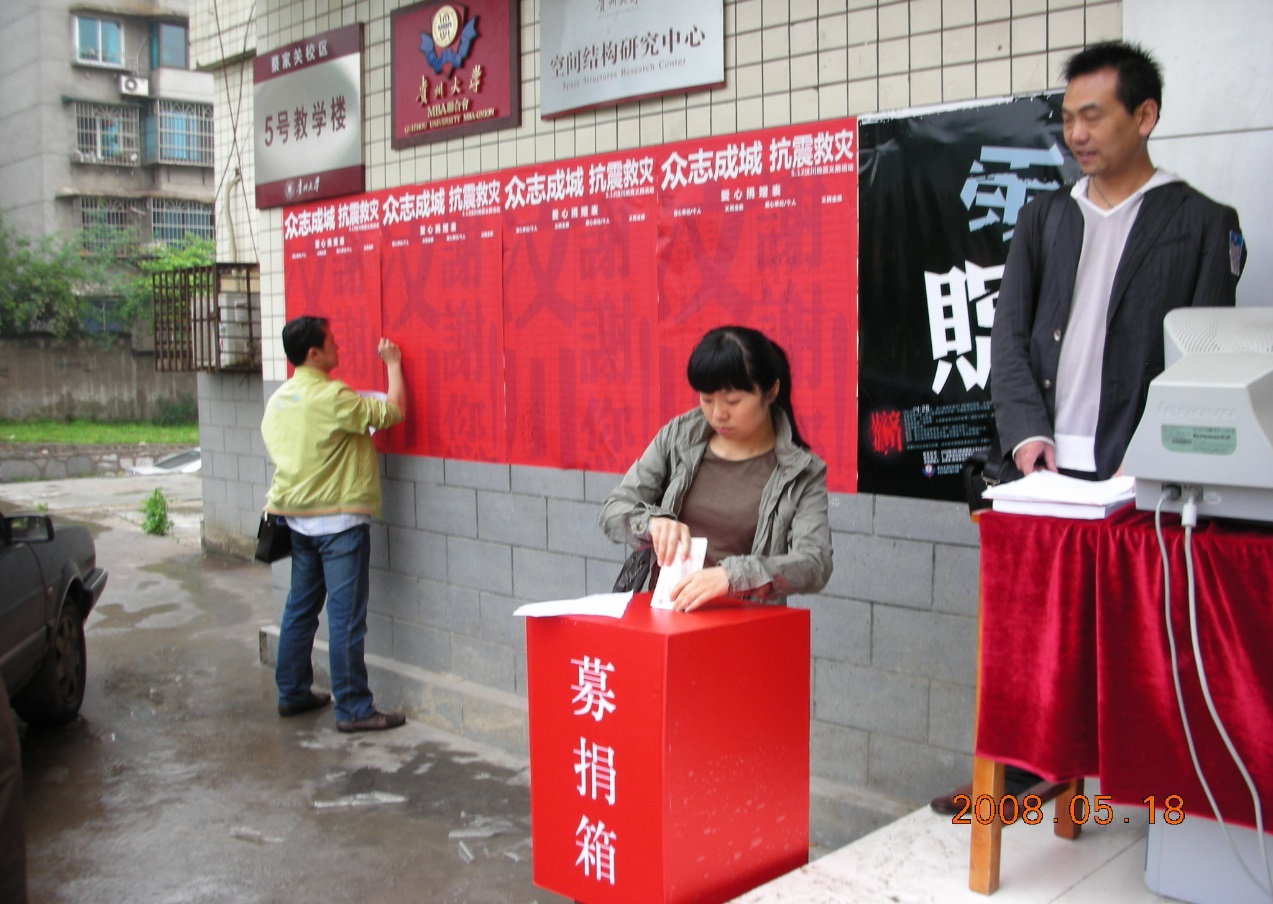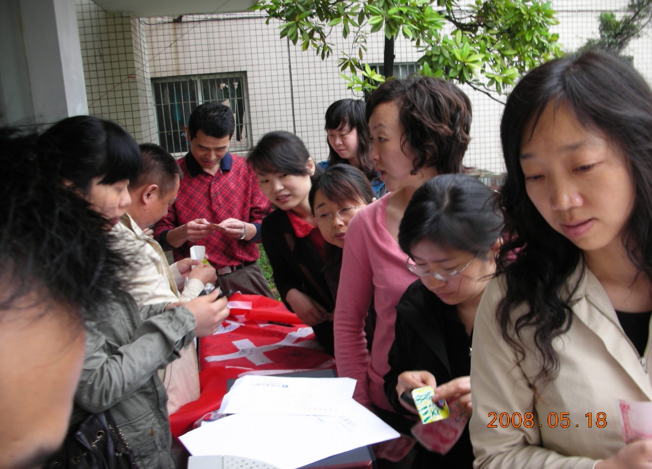 5月18日,350vip8888新葡的京集团MBA联合会在蔡家关校区5号教学楼大门口举行了“350vip8888新葡的京集团MBA抗震救灾募捐活动”。此次活动共有16个MBA班级参加。活动中,MBA学员纷纷慷慨解囊,为灾区人民献爱心。本次活动所募集的款项将用于救助四川“512地震”中受灾群众。