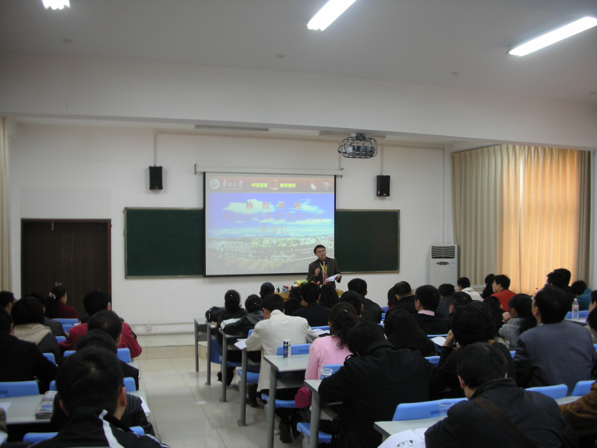 开学典礼仪式结束后,由徐琨先生(中国华西工程设计建设集团贵州公司董事长)为MBA学员做了题为《后进入危机时期的工商管理变化》的精彩讲座(讲座由李烨教授主持)。