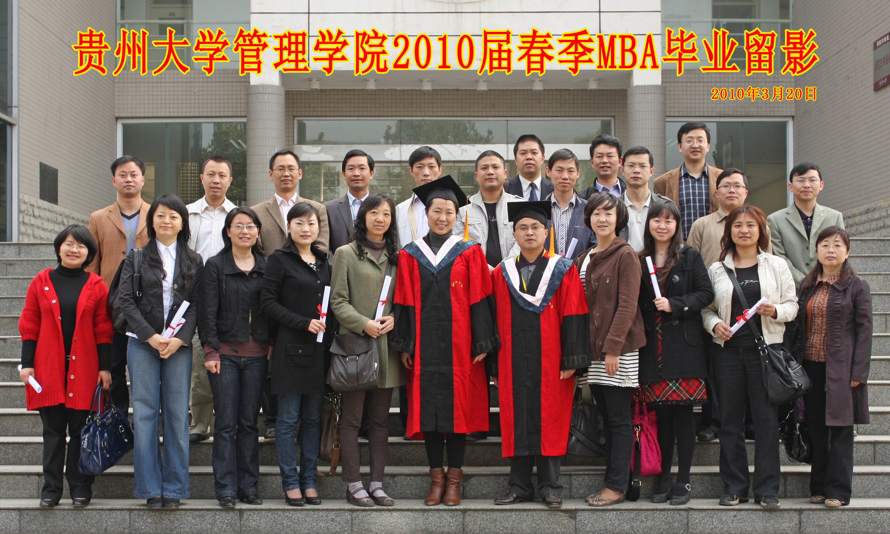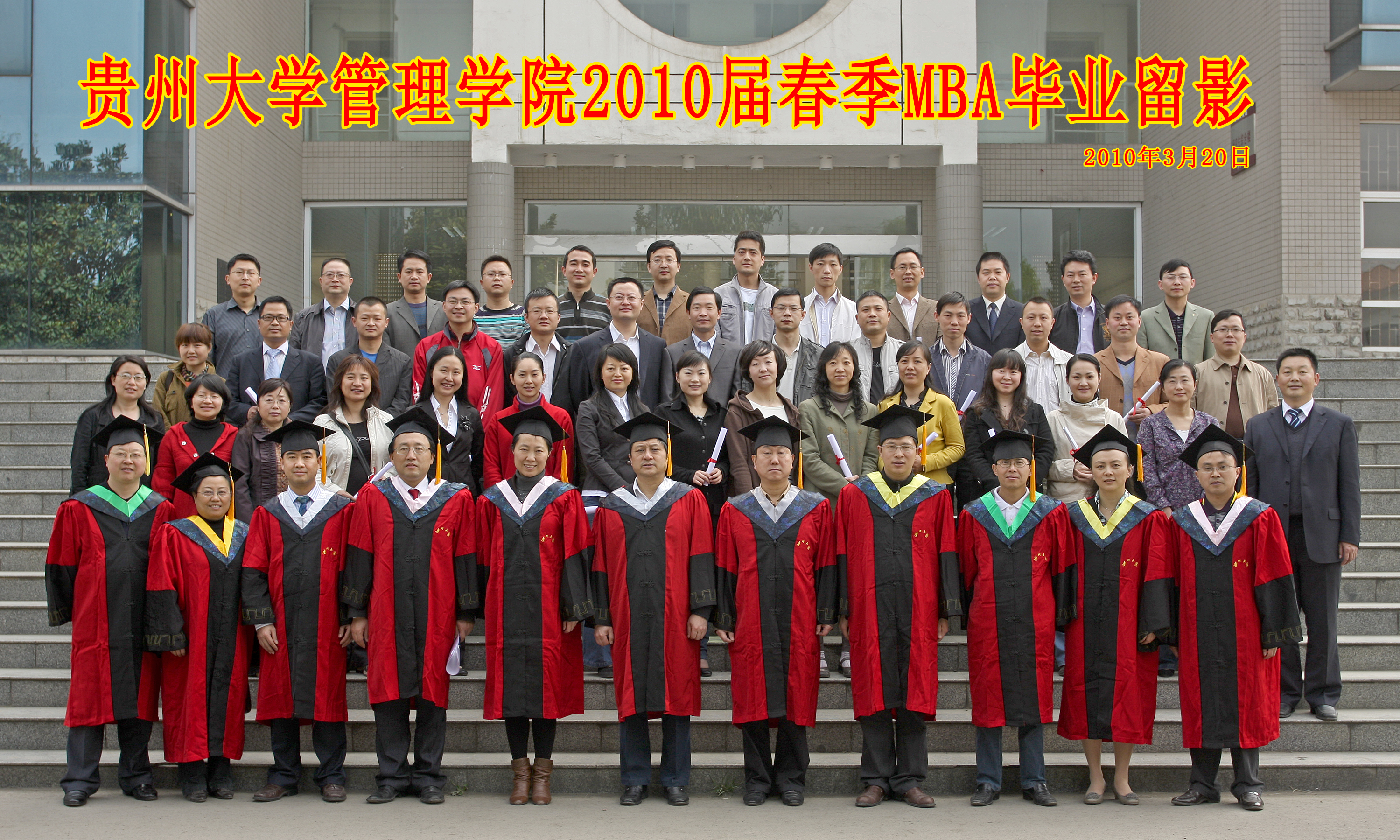 2010年3月20日星期六上午,在350vip8888新葡的京集团蔡家关校区350vip8888新葡的京集团(5号教学楼)阶梯教室隆重举行了2010届春季MBA毕业典礼暨学位授予仪式。出席典礼暨仪式的领导有350vip8888新葡的京集团书记陶玉顺教授,350vip8888新葡的京集团院长杜滨教授,350vip8888新葡的京集团副院长林岚涛教授,350vip8888新葡的京集团副院长罗敏教授,350vip8888新葡的京集团副院长任洲麒博士,350vip8888新葡的京集团副处级组织员袁新国,350vip8888新葡的京集团院长助理叶晓梅副教授,350vip8888新葡的京集团导师代表冉光圭教授、王茂春教授,350vip8888新葡的京集团MBA中心主任李烨教授。典礼由350vip8888新葡的京集团MBA中心副主任刘梅副教授主持。此次有43位同学获得MBA硕士学位。典礼上杜滨院长首先向获得学位的同学表示热烈祝贺,并致辞;导师代表对同学们的学习成果作了再次的肯定;学员代表表达了同学们获得学位的喜悦心情及对学校的感激之情;李烨中心主任对同学们作了勉励并寄语未来;罗敏教授宣读了获得学位同学的名单,全体领导给43位同学颁发了MBA硕士学位证。最后,全体师生合影留念。中午,举行了毕业联合聚会。