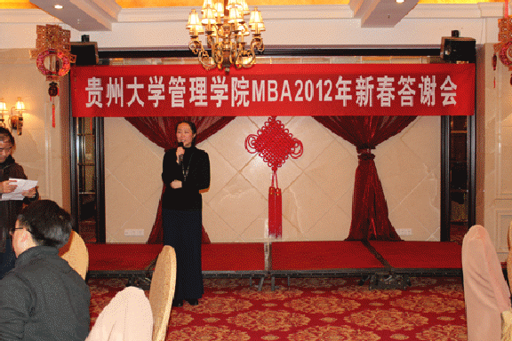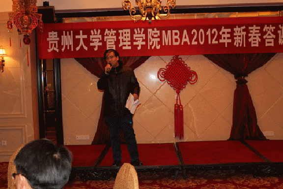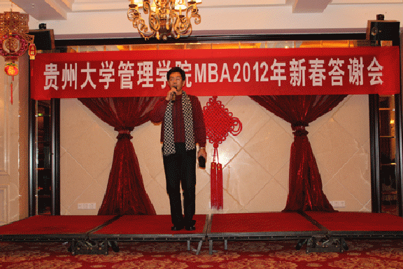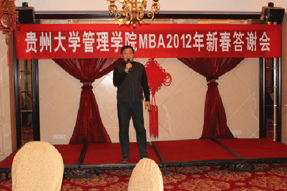 2012年1月9日,MBA教育中心2012年新春答谢会在贵阳能辉酒店温情开幕。本次活动旨在感谢长期以来支持350vip8888新葡的京集团MBA教育中心发展、给予中心众多帮助的领导、老师、同事和MBA联合会的同学们。350vip8888新葡的京集团副校长王红蕾、350vip8888新葡的京集团书记陶玉顺、院长杜滨、副院长罗敏等领导以及MBA任课教师&论文指导老师、MBA学生联合会、MBA学员代表、MBA教育中心全体工作人员100余人出席了当天活动。