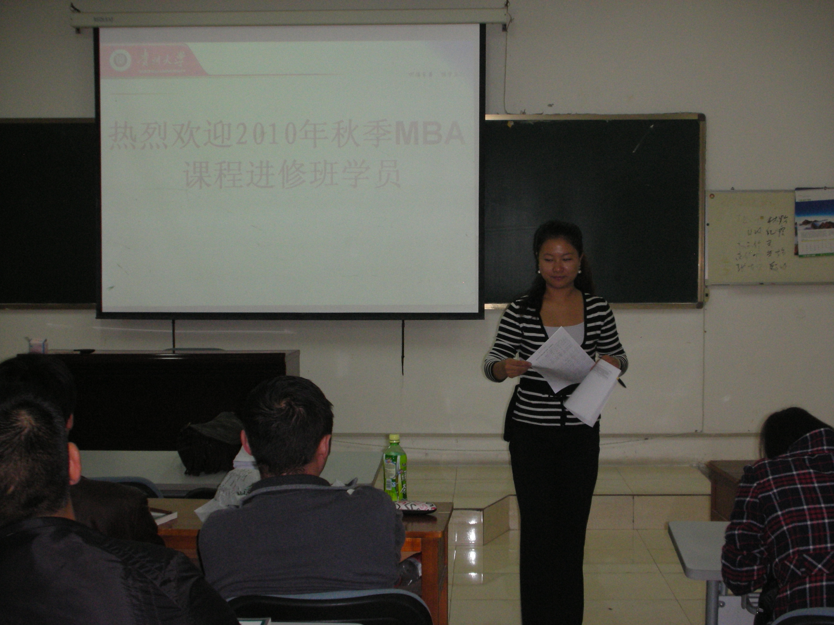 2010年10月10日上午350vip8888新葡的京集团SMBA1007(课程进修班)在350vip8888新葡的京集团蔡家关校区举行了隆重的开班仪式。仪式上350vip8888新葡的京集团MBA教育中心主任李烨教授作了主题发言,李烨教授首先向学员们介绍了350vip8888新葡的京集团的基本校情和MBA项目、SMBA项目的相关情况,并对新入学学员提出了新的希望。同时承担MBA教务管理的卿老师对新学员提出了相应的教学要求。仪式由MBA教育中心副主任刘梅副教授主持。