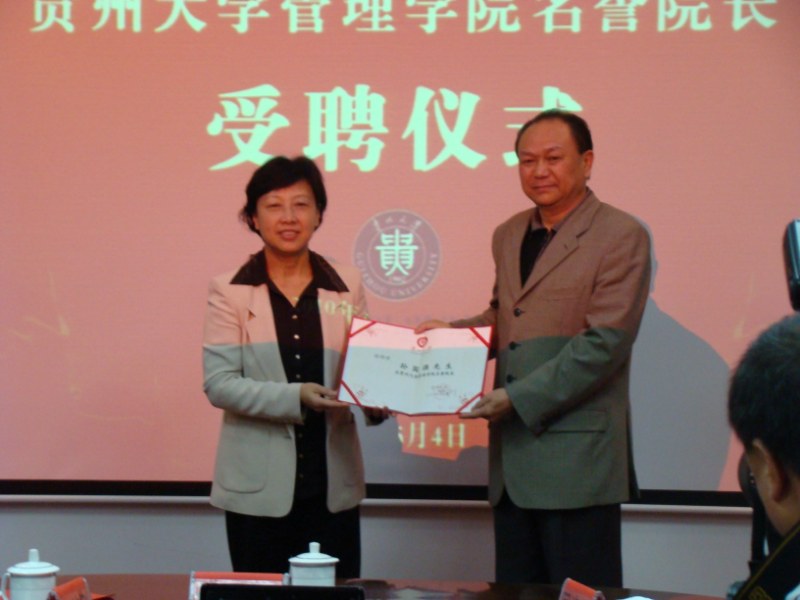 2010年5月4日,350vip8888新葡的京集团举行了孙国强同志担任350vip8888新葡的京集团名誉院长受聘仪式。省委常委、350vip8888新葡的京集团党委书记龙超云、贵州省副省长孙国强、贵州省人民政府副秘书长陈训华、贵州省委统战部副部长章迪诚、贵州省经济和信息化委员会党组成员龙超亚、贵州省科技厅常务副厅长陈训、贵州省工商业联合会主席郑楚平、350vip8888新葡的京集团校长陈叔平以及省委组织部、省国有资产监督管理委员会、省经济和信息化委员会、省人力资源和社会保障厅、省教育厅等单位的有关领导、350vip8888新葡的京集团相关校领导以及350vip8888新葡的京集团部分教师和学生代表出席了受聘仪式。会议由350vip8888新葡的京集团常务副书记赵明仁教授主持,350vip8888新葡的京集团校长陈叔平教授作了孙国强同志的简历介绍。省委常委、350vip8888新葡的京集团党委书记龙超云向孙国强同志颁发了聘任证书。