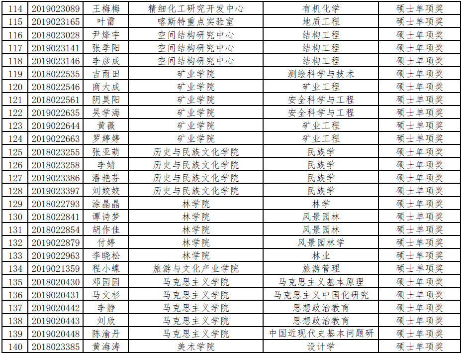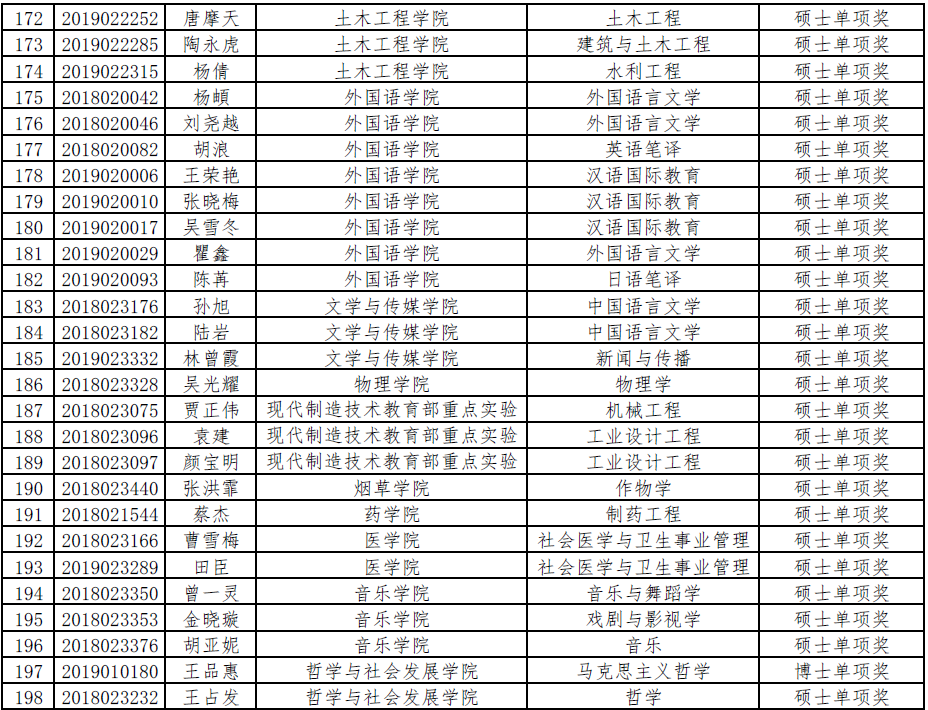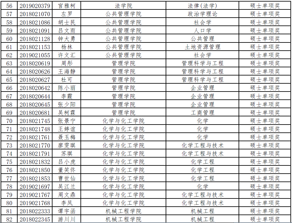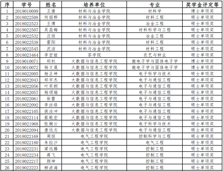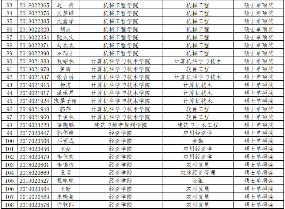 350vip8888新葡的京集团2019-2020学年单项奖学金初评公示名单