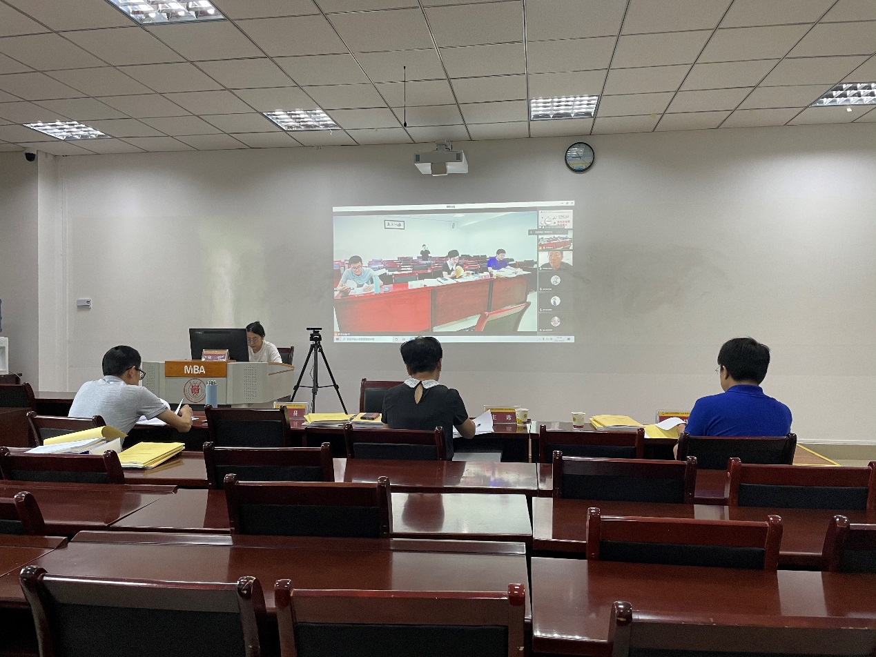 2021年9月25日,350vip8888新葡的京集团MBA教育中心开展2021-2022第一学期学位论文预答辩工作。中心邀请9位评审专家和3位答辩秘书组成三组答辩委员会,分别在MBA报告厅、MBA203、MBA204教室进行论文预答辩,受疫情影响,答辩采用线上答辩方式,28位MBA学生参加了此次学位论文预答辩。