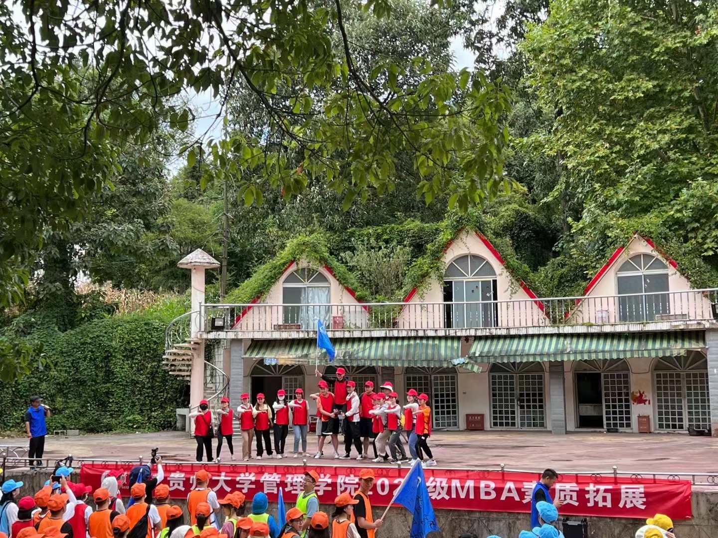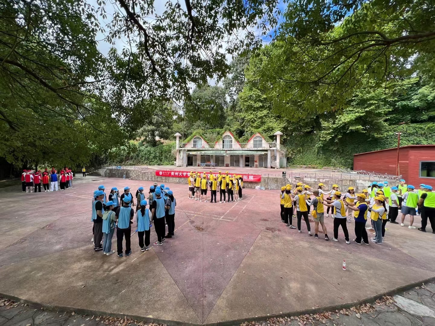 为培养学生团队合作意识,增强学生团队凝聚力,加深学员之间的沟通交流与相互信任,2022年8月21日。350vip8888新葡的京集团MBA教育中心何跃勇、王小清等七位老师带领2021级6个班239位MBA研究生在花溪栖碧山庄训练基地成功举行了素质拓展活动。