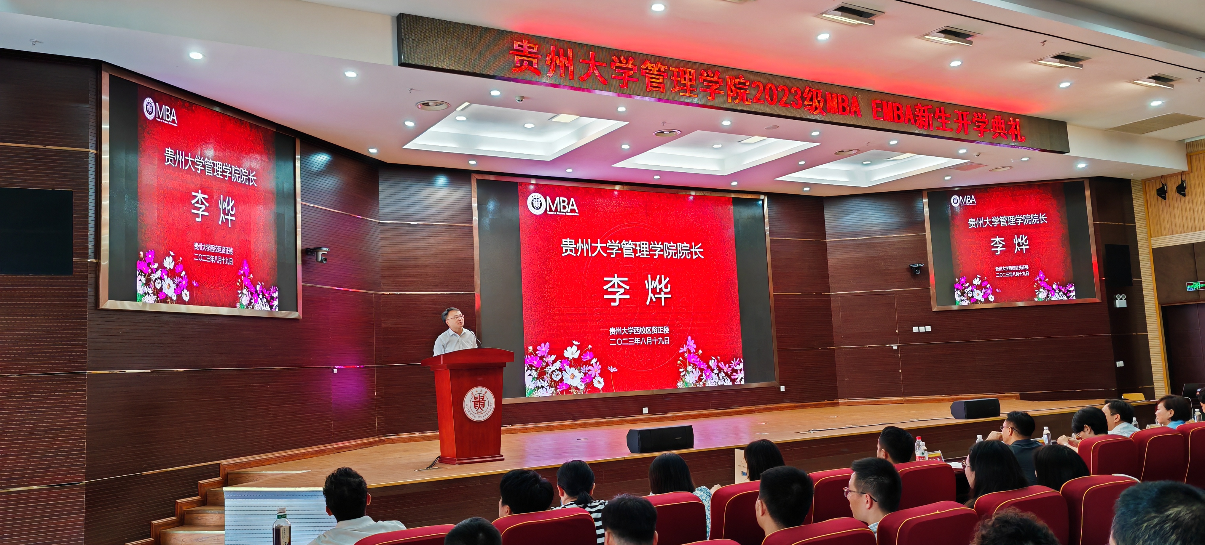 2023年8月19日上午,350vip8888新葡的京集团MBA教育中心在西校区贤正楼107报告厅隆重举行了“350vip8888新葡的京集团2023级工商管理硕士(MBA暨EMBA)开学典礼”。350vip8888新葡的京集团院长李烨教授,350vip8888新葡的京集团党委正处级组织员、350vip8888新葡的京集团党委副书记(主持党委工作)周莉莉教授,350vip8888新葡的京集团副院长李本光教授,副院长宋山梅教授,副书记邓琳老师,MBA中心主任项凯标教授,MBA导师代表刘遗志教授,350vip8888新葡的京集团各科室负责人、MBA教育中心全体老师、班主任,2023级MBA、EMBA新生共460余名参加了开学典礼。典礼由副院长李本光教授主持。