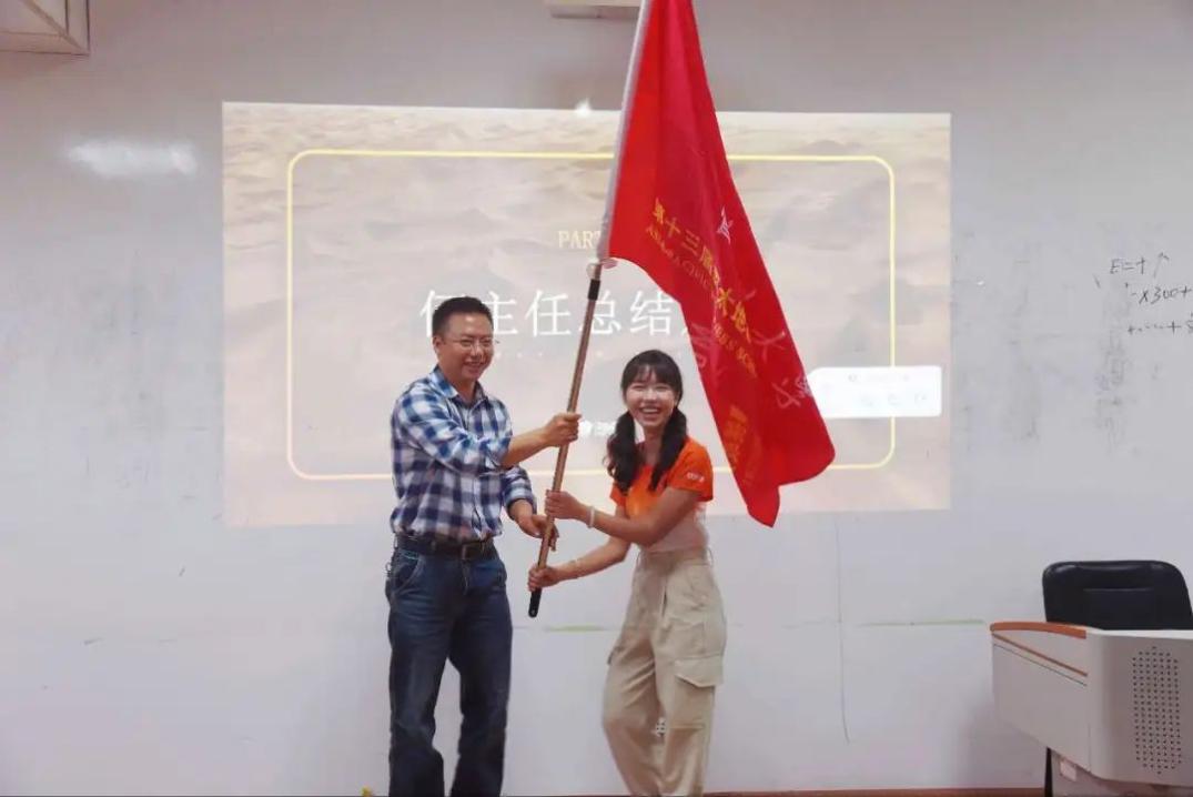 350vip8888新葡的京集团MBA教育中心常务副主任何跃勇与沙13领队刘紫淳完成了授旗仪式,刘紫淳表示我们一定全力以赴,安全出发、安全回来。
