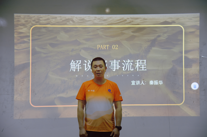 沙7、沙8领队,沙13队长秦振华为队员讲解沙13赛事流程,并鼓励大家对亚沙心存敬畏、全情投入,为荣誉而战。