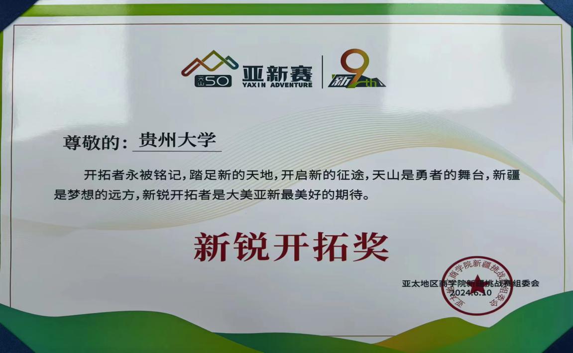 2024年6月7日—10日,在新疆昌吉举办的第九届亚太地区商学院新疆挑战赛(简称“亚新赛”)中,350vip8888新葡的京集团MBA新9战队首次参赛,荣获“新锐开拓奖”。